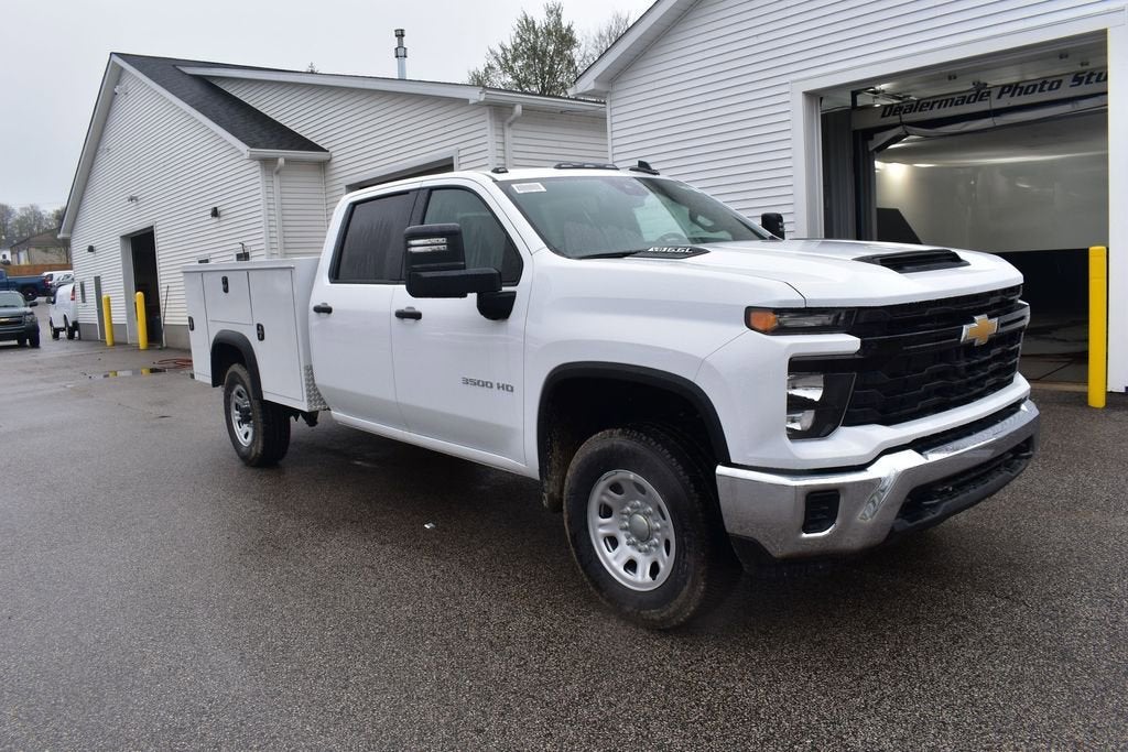 How would you like riding home in this outstanding 2026 Chevrolet Silverado 3500HD Work Truck in Summit White, beautifully equipped with Preferred Equipment Group 1WT (170 Amp Alternator, 2-Speed Electronic Shift Transfer Case, 3.5 Diagonal Monochromatic Display DIC, Black Front Bumper, Black Mirror Caps, Black Rear Bumper, Bluetooth® For Phone, Chevrolet Connected Access Capable, Compass Located in Instrument Cluster, Durabed Pickup Bed, HD Rear Vision Camera, High-Visibility Molded in Black Outside Mirrors, Locking Tailgate, Manual Tailgate Function with No EZ Lift, Manual Tilt-Wheel Steering Column, OnStar Services Capable, Power Door Locks, Power Front Windows with Driver Express Up/Down, Power Rear Windows with Express Down, Push Button Start, Rear 60/40 Folding Bench Seat (folds Up), Remote Keyless Entry, Rubberized-Vinyl Floor Covering, Solar Absorbing Tinted Glass, Standard Tailgate, Steering Wheel Mounted Electronic Cruise Control, and Wi-Fi Hotspot Capable), Snow Plow Prep/Camper Package (220 Amp Alternator), Suspension Package, WT Convenience Package (Deep-Tinted Glass, Electric Rear-Window Defogger, EZ Lift Power Lock and Release Tailgate, and Outside Power-Adjustable Mirrors), 120-Volt Interior Power Outlet, 3.73 Rear Axle Ratio, 4-Way Manual Driver Seat Adjuster, 4-Way Manual Passenger Seat Adjuster, 4-Wheel Disc Brakes, 6 Speakers, 6-Speaker Audio System Feature, 700 Cold-Cranking Amps/70 Amp-Hr Auxiliary Battery, ABS brakes, Air Conditioning, AM/FM radio, Apple CarPlay/Android Auto, Auto High-beam Headlights, Auto-Dimming Inside Rear-View Mirror, Back-Up Alarm Calibration, Brake assist, Compass, Delay-off headlights, Driver door bin, Dual front impact airbags, Dual front side impact airbags, Electronic Stability Control, Emergency communication system, Engine Block Heater, Front 40/20/40 Split-Bench Seats with Lockable Storage, Front anti-roll bar, Front Center Armrest w/Storage, Front Chrome Bumper, Front License Plate Kit, Front reading lights, Front wheel independent suspension, Fully automatic headlights, Heavy-Duty 80 Amp-Hour Battery, Illuminated entry, Low tire pressure warning, Occupant sensing airbag, Outside temperature display, Overhead airbag, Overhead console, Panic alarm, Passenger door bin, Passenger vanity mirror, Perimeter Lighting, Power steering, Power windows, Power-Adjustable Outside Mirrors, Premium audio system: Chevrolet Infotainment System 3, Radio: Chevrolet Infotainment 3 System, Rear reading lights, Rear step bumper, Remote keyless entry, SiriusXM Trial Subscription, Speed control, Split folding rear seat, Tachometer, Tilt steering wheel, Traction control, Trip computer, Variably intermittent wipers, Vinyl Seat Trim, and Voltmeter! This Chevrolet Silverado 3500HD has many features and is well equipped including.