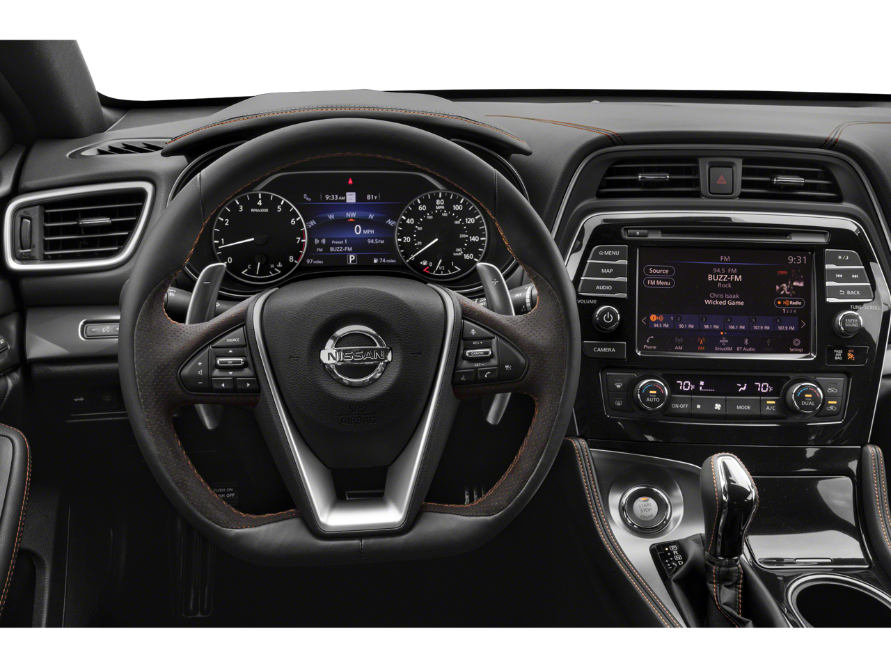 **INCLUDED FEATURES & OPTIONS: Alloy wheels, Blind Spot Warning, Brake assist, Electronic Stability Control, Heated front seats, Heated steering wheel, Memory seat, Navigation System, Power driver seat, Power moonroof, Premium Ascot Leather-Appointed Seat Trim, Radio: AM/FM/CD Audio System w/Navigation, Remote keyless entry, Speed control, Speed-sensing steering, Ventilated front seats, Wheels: 19 Gloss Black Alloy w/Center Caps, 11 Speakers, 4-Wheel Disc Brakes, ABS brakes, Air Conditioning, AM/FM radio: SiriusXM, Auto High-beam Headlights, Auto-dimming door mirrors, Auto-dimming Rear-View mirror, Automatic temperature control, Body-Colored Splash Guards, Bumpers: body-color, CD player, Compass, Delay-off headlights, Driver door bin, Driver vanity mirror, Dual front impact airbags, Dual front side impact airbags, First Aid Kit, Four wheel independent suspension, Front anti-roll bar, Front Bucket Seats, Front Center Armrest, Front dual zone A/C, Front fog lights, Front reading lights, Front Zero Gravity Climate-Controlled Seats, Fully automatic headlights, Garage door transmitter: HomeLink, Heated door mirrors, Illuminated entry, Knee airbag, Low tire pressure warning, NissanConnect featuring Apple CarPlay and Android Auto, Occupant sensing airbag, Outside temperature display, Overhead airbag, Overhead console, Panic alarm, Passenger door bin, Passenger vanity mirror, Power door mirrors, Power passenger seat, Power steering, Power windows, Radio data system, Rear anti-roll bar, Rear reading lights, Rear seat center armrest, Rear side impact airbag, Rear window defroster, Security Impact Sensors, Security system, Shopping Bag Hooks, Sliding Trunk Organizer Tray, Speed-Sensitive Wipers, Split folding rear seat, Spoiler, Sport Carpeted Floor Mats, Sport steering wheel, Steering wheel mounted audio controls, Tachometer, Telescoping steering wheel, Tilt steering wheel, Traction control, Trip computer, Trunk Area Protector, Trunk Net, Turn signal indicator mirrors, and Variably intermittent wipers. https://www.kbb.com/kbbreport/s81qv