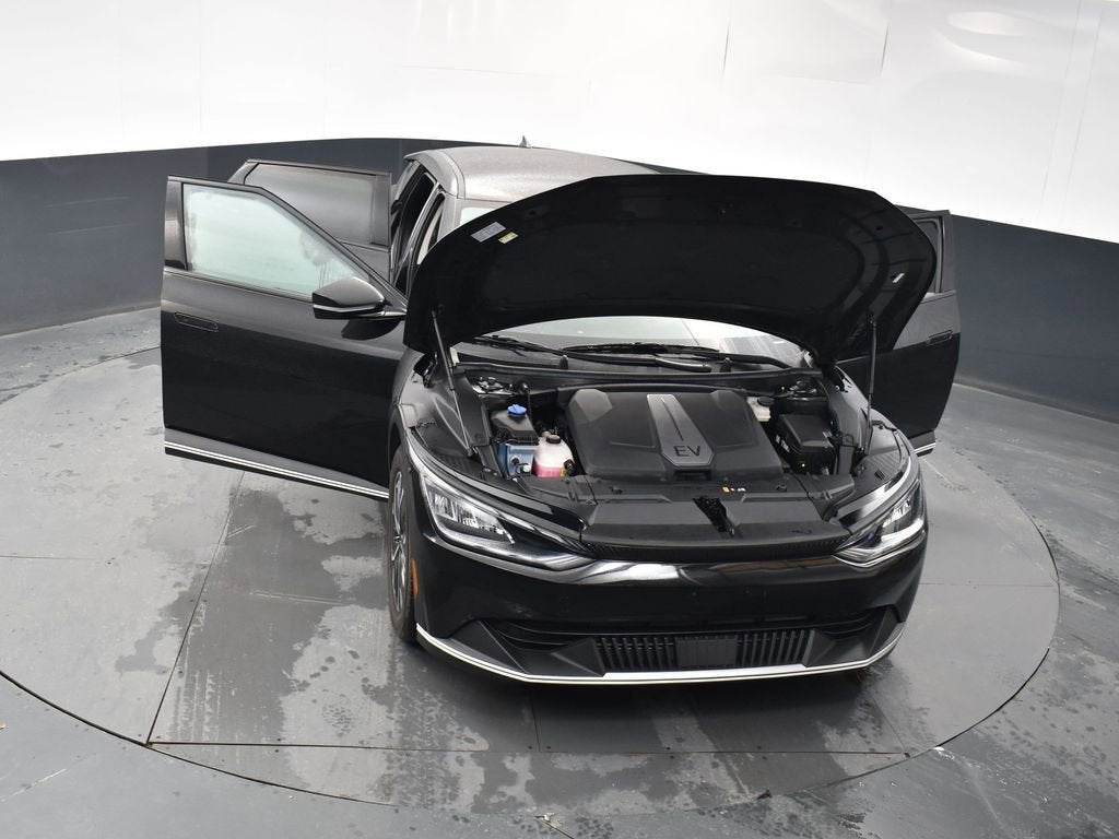 2024 Aurora Black Pearl Kia EV6 Electric Motor Light AWD This Kia EV6 has many features and is well equipped including, Alloy wheels, Apple CarPlay & Android Auto, Brake assist, Electronic Stability Control, Heated front seats, Heated steering wheel, Memory seat, Navigation system: AVN 5.0 Navigation System, Power driver seat, Radio: AVN 5.0 Navigation System w/SiriusXM, Recycled Fabric & Vegan Leather Seat Trim, Remote keyless entry, Speed control, Wheels: 7.5J x 19 Dark Gray Painted Alloy.