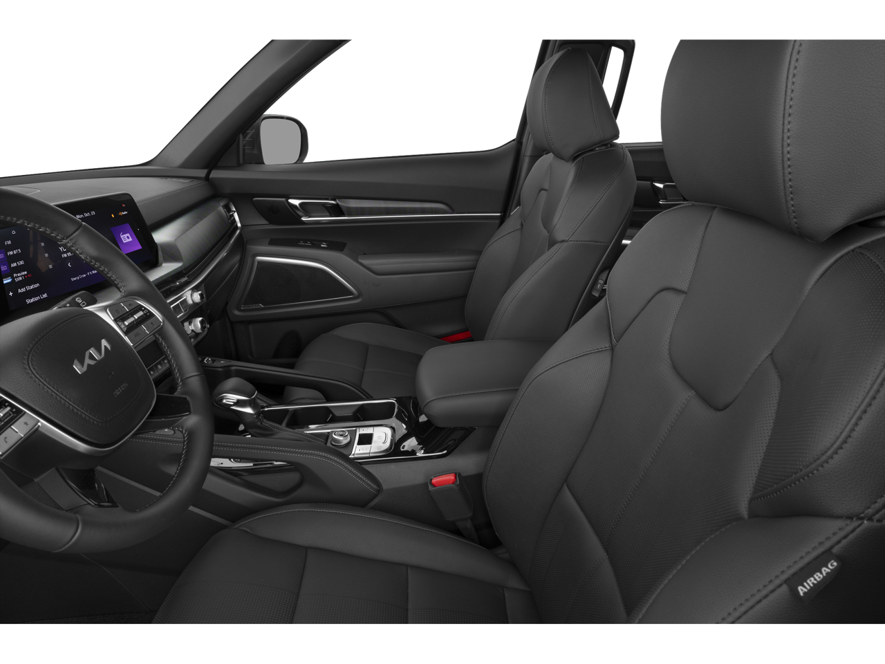 **INCLUDED FEATURES & OPTIONS: EX Captain's Chair Package (2nd Row Captain Chairs), 3.648 Axle Ratio, 3rd row seats: split-bench, 4-Wheel Disc Brakes, 6 Speakers, ABS brakes, Air Conditioning, Alloy wheels, AM/FM radio: SiriusXM, Apple CarPlay & Android Auto, Auto High-beam Headlights, Auto-dimming Rear-View mirror, Automatic temperature control, Brake assist, Bumpers: body-color, Cargo Cover, Cargo Tray Seat Back, Carpet Floor Mats, Compass, Cross Bars, Delay-off headlights, Driver door bin, Driver vanity mirror, Dual front impact airbags, Dual front side impact airbags, Electronic Stability Control, Emergency communication system: 911 Connect, Exterior Parking Camera Rear, Four wheel independent suspension, Front anti-roll bar, Front Bucket Seats, Front Center Armrest, Front dual zone A/C, Front reading lights, Fully automatic headlights, Heated & Ventilated Front Bucket Seats, Heated door mirrors, Heated front seats, Heated steering wheel, Hybrid Cargo Net, Illuminated entry, Knee airbag, Leather Seat Trim, Leather Shift Knob, Leather steering wheel, Low tire pressure warning, Navigation System, Occupant sensing airbag, Outside temperature display, Overhead airbag, Overhead console, Panic alarm, Passenger door bin, Passenger vanity mirror, Power door mirrors, Power driver seat, Power Liftgate, Power moonroof, Power passenger seat, Power steering, Power windows, Radio data system, Radio: AM/FM Display Audio System, Rear air conditioning, Rear anti-roll bar, Rear audio controls, Rear reading lights, Rear seat center armrest, Rear side impact airbag, Rear window defroster, Rear window wiper, Reclining 3rd row seat, Remote keyless entry, Roof rack: rails only, Security system, Smart Key w/ Push Button and Remote Start, Speed control, Speed-sensing steering, Split folding rear seat, Spoiler, Steering wheel mounted audio controls, Tachometer, Telescoping steering wheel, Tilt steering wheel, Traction control, Trip computer, Turn signal indicator mirrors, Variably intermittent wipers, Ventilated front seats, Wheel Locks, and Wheels: 20 x 7.5 Black Finish.