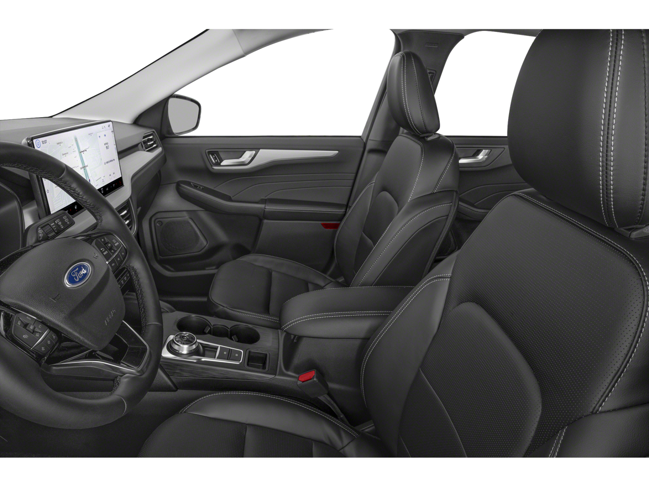 **INCLUDED FEATURES & OPTIONS: 2.91 Axle Ratio, 4-Wheel Disc Brakes, 6 Speakers, ABS brakes, Air Conditioning, Alloy wheels, AM/FM radio: SiriusXM, AM/FM Stereo, Auto High-beam Headlights, Auto-dimming Rear-View mirror, Automatic temperature control, Brake assist, Bumpers: body-color, Compass, Delay-off headlights, Driver door bin, Driver vanity mirror, Dual front impact airbags, Dual front side impact airbags, Electronic Fuel Door Release, Electronic Stability Control, Emergency communication system: SYNC 4 911 Assist, FordPass Connect, Four wheel independent suspension, Front anti-roll bar, Front Bucket Seats, Front Center Armrest, Front dual zone A/C, Front fog lights, Front reading lights, Fully automatic headlights, Heated ActiveX Trimmed Front Sport Contour Bucket Seats, Heated door mirrors, Heated front seats, Heated steering wheel, Illuminated entry, Internet access capable: FordPass Connect 4G, Knee airbag, Low tire pressure warning, Memory seat, Navigation system: Connected Navigation, Neutral Towing Capability, Occupant sensing airbag, Outside temperature display, Overhead airbag, Overhead console, Panic alarm, Passenger door bin, Passenger vanity mirror, Pedestrian Alert Sounder, Power door mirrors, Power driver seat, Power Liftgate, Power passenger seat, Power steering, Power windows, Radio data system, Rear anti-roll bar, Rear reading lights, Rear seat center armrest, Rear window defroster, Rear window wiper, Remote keyless entry, Security system, Speed control, Speed-sensing steering, Speed-Sensitive Wipers, Split folding rear seat, Spoiler, Steering wheel mounted audio controls, SYNC 4 w/Enhanced Voice Recognition, Tachometer, Telescoping steering wheel, Tilt steering wheel, Traction control, Trip computer, Variably intermittent wipers, and Wheels: 19 Machined-Face Aluminum.